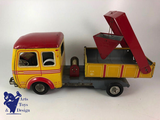 Antique toy vebe 310 France 1950 Large tin Mobile crane clockwork