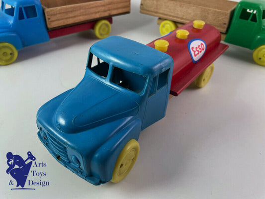 Antique toy Citroen MONNERET JURA LOT OF 3 PLASTIC and WOOD U23 Trucks inc ESSO