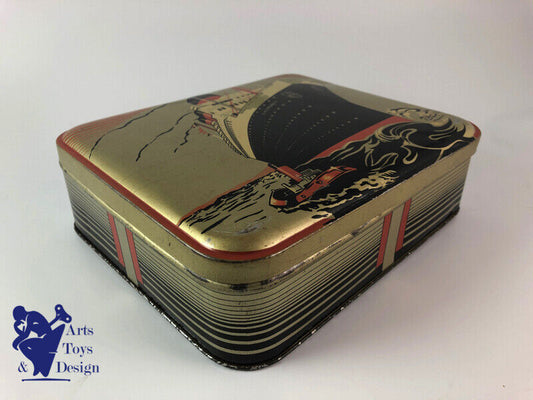 Antique tin biscuits box Company General Transatlantic Normandy 1935