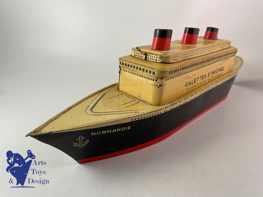 Antique toy biscuit box boat Liner Normandie Galettes St Michel L 57cm